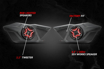 - 6.5” Front Door Speaker-Pods w/160w SSV Works Lighted Speakers