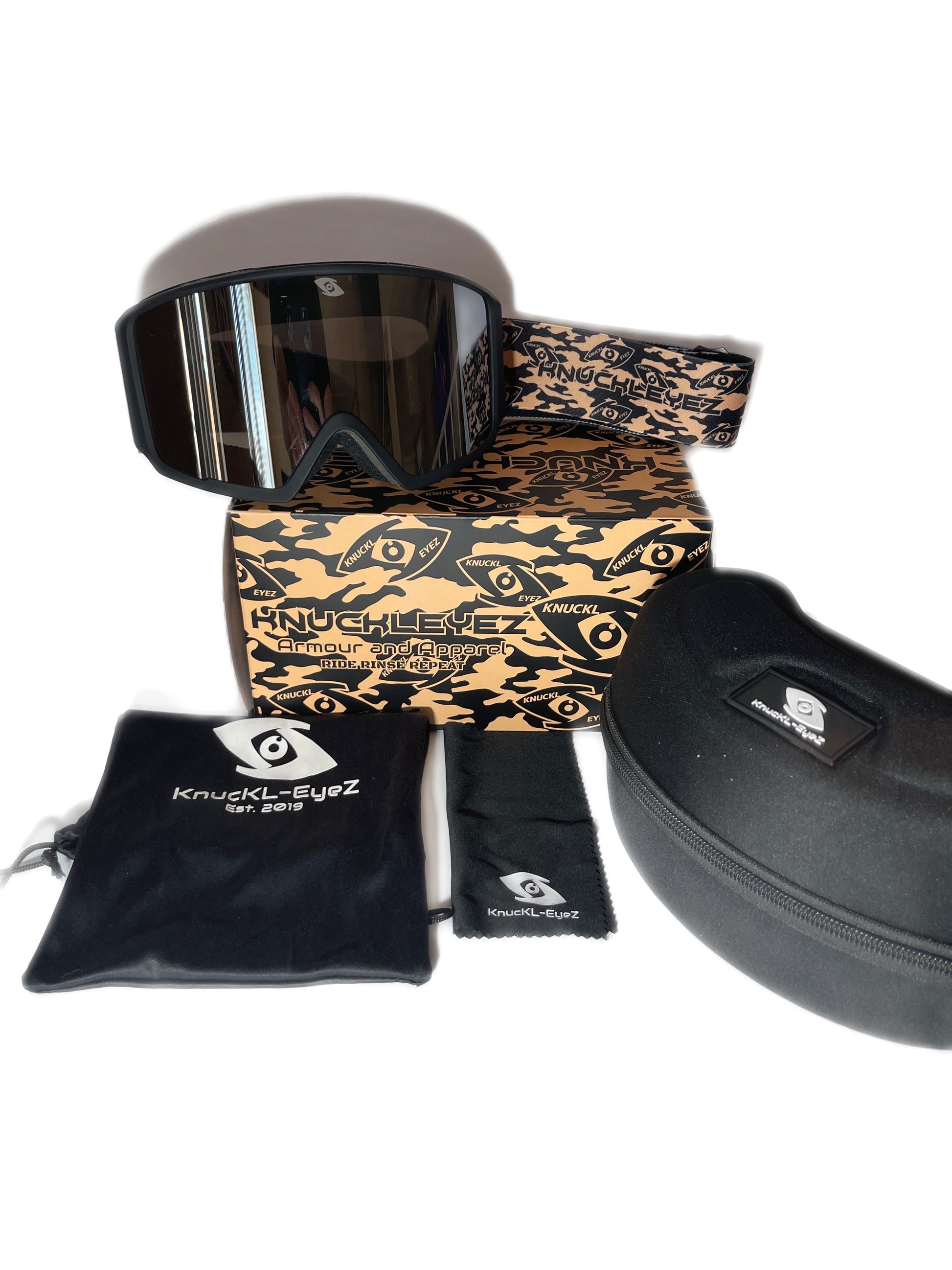 KnucKL-EyeZ Multi-Sport Goggles with Black Frame and Tan Camo Strap.
