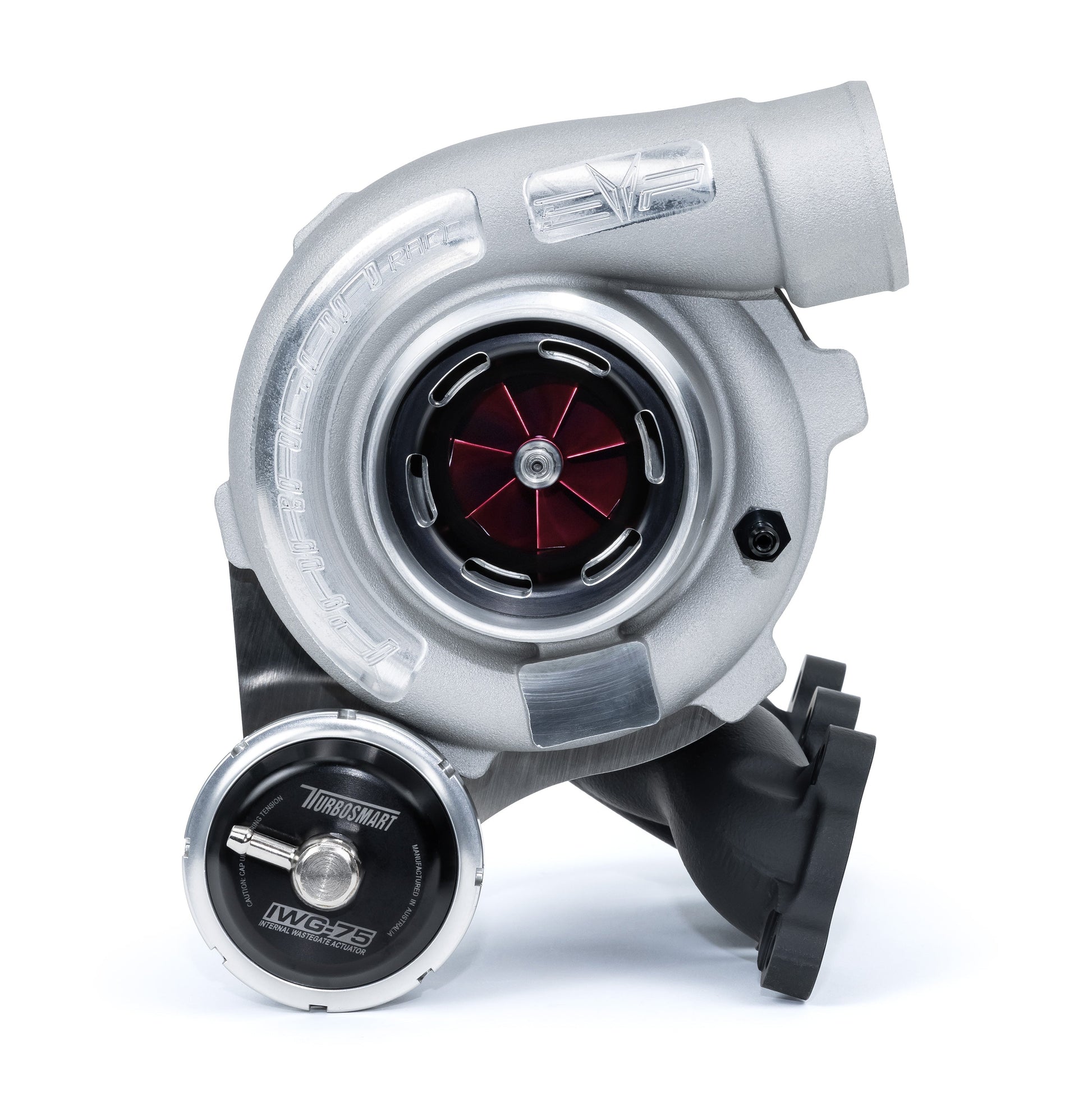 - EVP Race Turbo Compressor Cover with billet insert and anodized compressor wheels