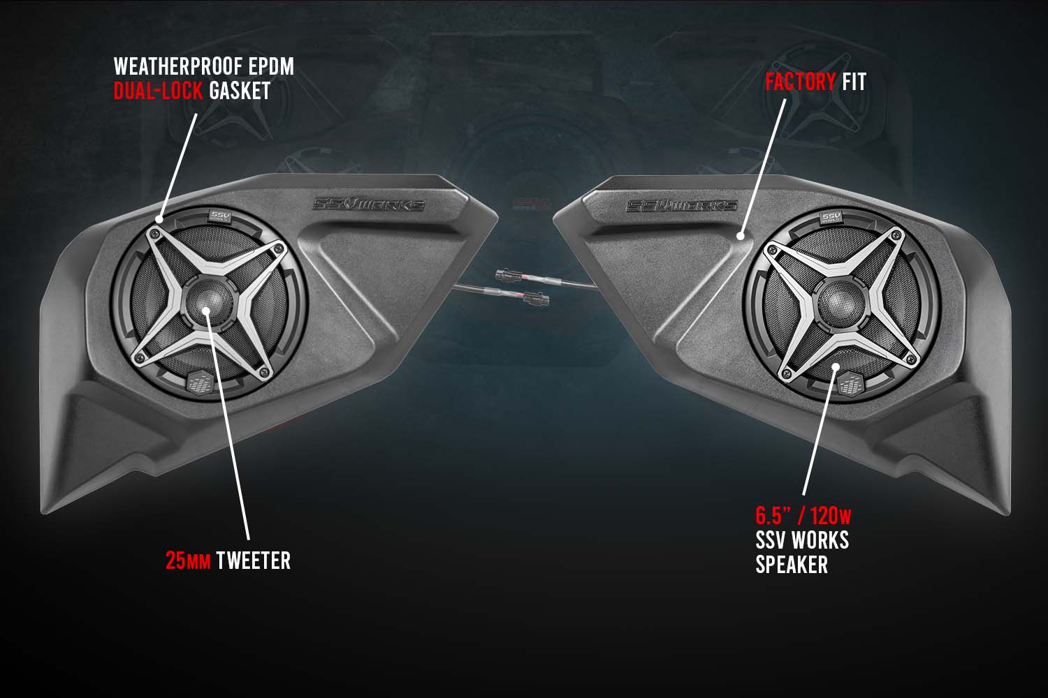 SSV Works is the first company to integrate audio in side-by-sides, we have pioneered all the great features you find in audio-systems today. From plug-&-play kit solutions, true weatherproof ratings, to factory fit and finishes, SSV has set the standard in UTV audio from the very beginning!